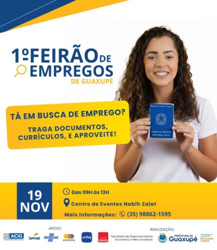A Prefeitura de Guaxupé promoverá, no dia 19 de novembro (terça-feira), o 1º Feirão de Empregos do município, com o objetivo de conectar empresas