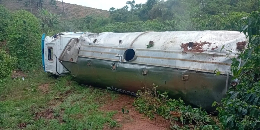 Caminhão-tanque tomba em descida no distrito de Petúnia, em Nova Resende (MG)