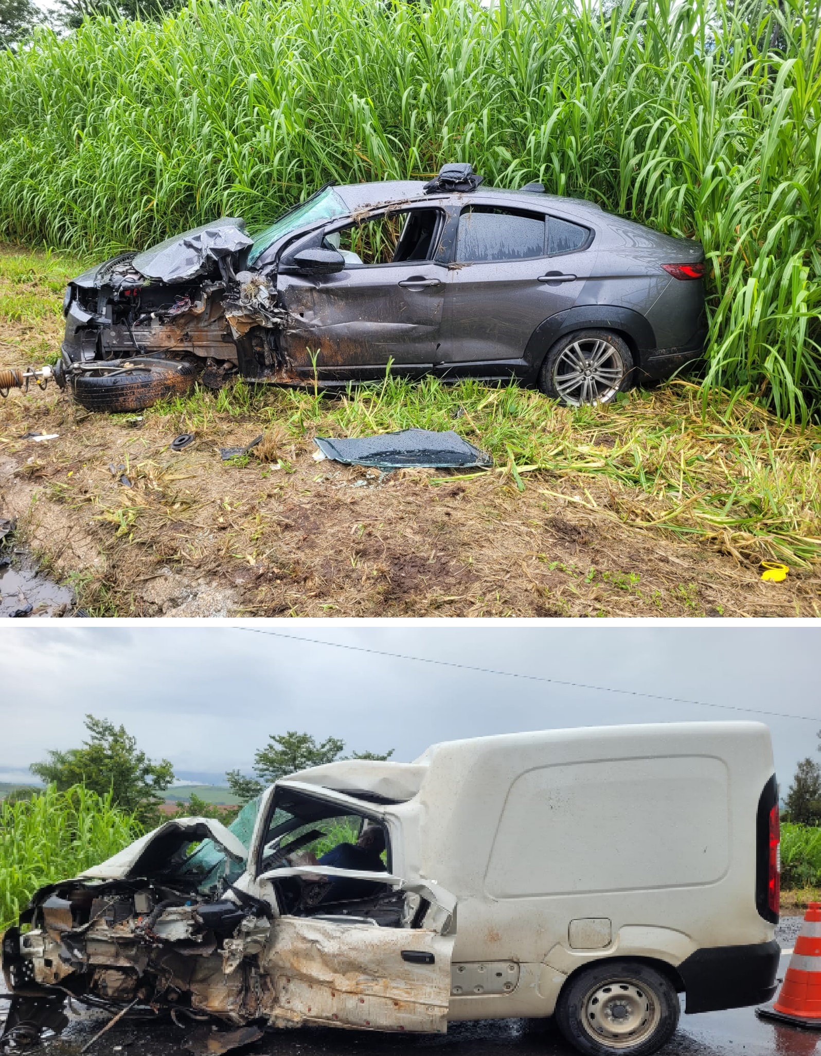 De acordo com a Polícia Militar, o condutor de um Fiat/Fiorino, de cor branca, de 51 anos, seguia no sentido Passos/Belo Horizonte quando, em razão das fortes chuvas, uma árvore caiu sobre a pista. Ao tentar desviar do obstáculo, o motorista invadiu a contramão e acabou colidindo frontalmente com um Fiat/Fastback que trafegava no sentido oposto.