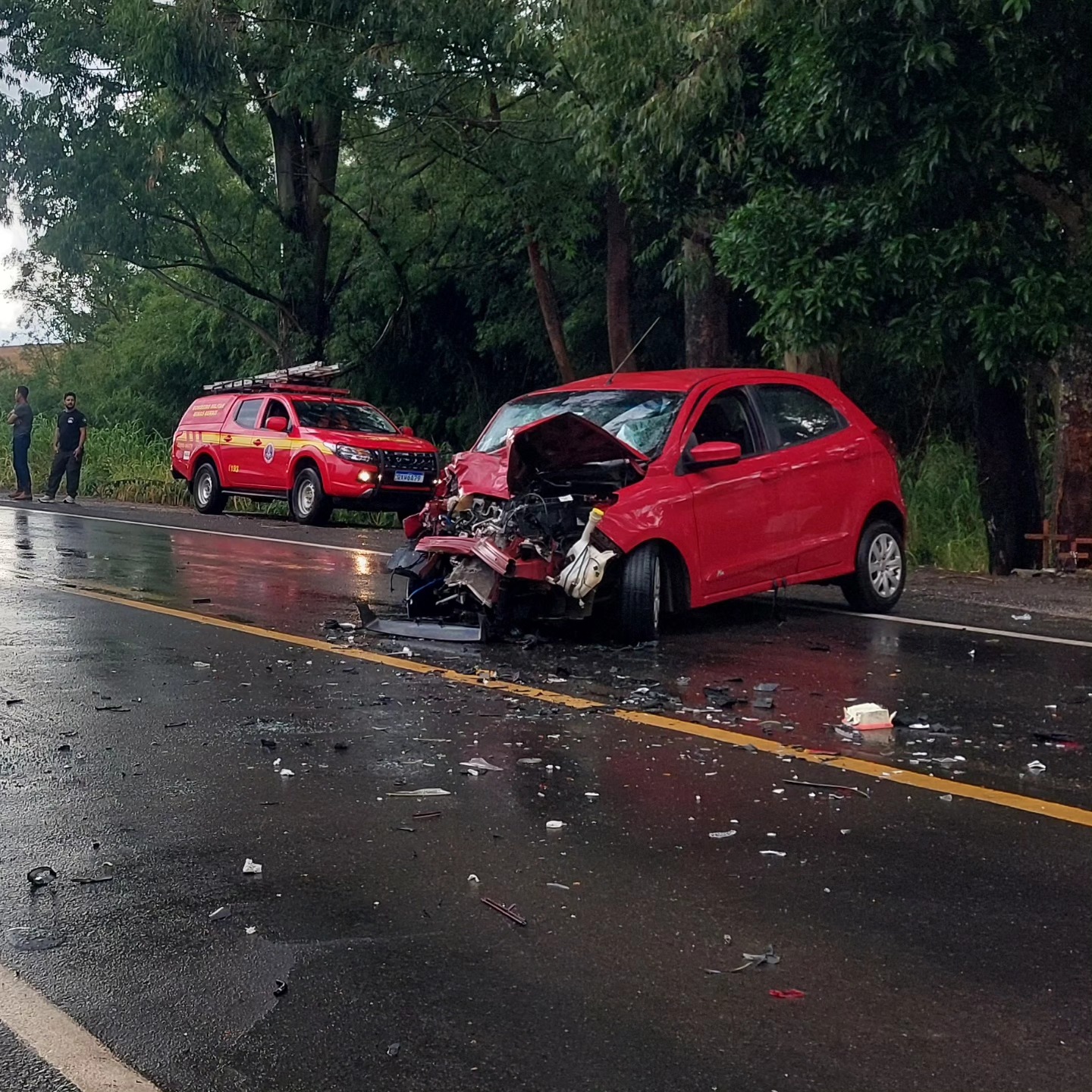 Um acidente envolvendo dois veículos foi registrado na tarde desta terça-feira (31) na BR-491, entre os municípios de Guaxupé e Muzambinho (MG). O Corpo de Bombeiros Militar de Guaxupé foi acionado para atender a ocorrência, que teria sido provocada após um dos condutores perder o controle da direção em meio às fortes chuvas. De acordo com testemunhas, um Ford Ka seguia no sentido Juruaia, enquanto um Mitsubishi ASX trafegava em direção a Guaxupé, quando ocorreu a colisão. Com o impacto, equipes de resgate foram mobilizadas para prestar socorro às vítimas. O motorista do ASX sofreu apenas escoriações leves e foi atendido pelos bombeiros. Já o passageiro do veículo foi socorrido pelo SAMU, inconsciente e com suspeita de traumatismo craniano. No Ford Ka, três ocupantes, um homem e duas mulheres receberam atendimento conjunto dos bombeiros e da concessionária EPR Vias do Café. Uma das passageiras apresentava suspeita de fratura na perna, enquanto os demais não tinham lesões aparentes. Todas as vítimas foram encaminhadas à Santa Casa de Guaxupé. As causas do acidente serão investigadas, e o controle do trânsito e a remoção dos veículos ficaram sob responsabilidade da concessionária e da Polícia Militar.