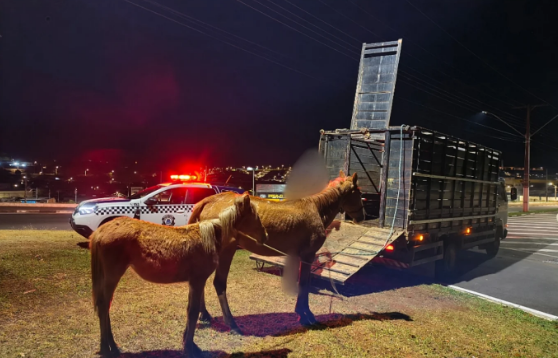 Na noite do último sábado, 11 de outubro de 2025, a Guarda Civil Municipal, em parceria com a empresa responsável pela apreensão de animais, realizou o recolhimento de dois cavalos que estavam soltos em via pública nas proximidades da entrada do bairro Vila Progresso.