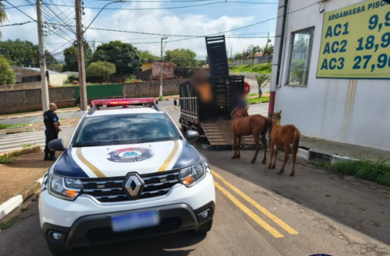 Guarda civil realiza apreensão de dois cavalos soltos na Avenida Dona Floriana em Guaxupé (MG)