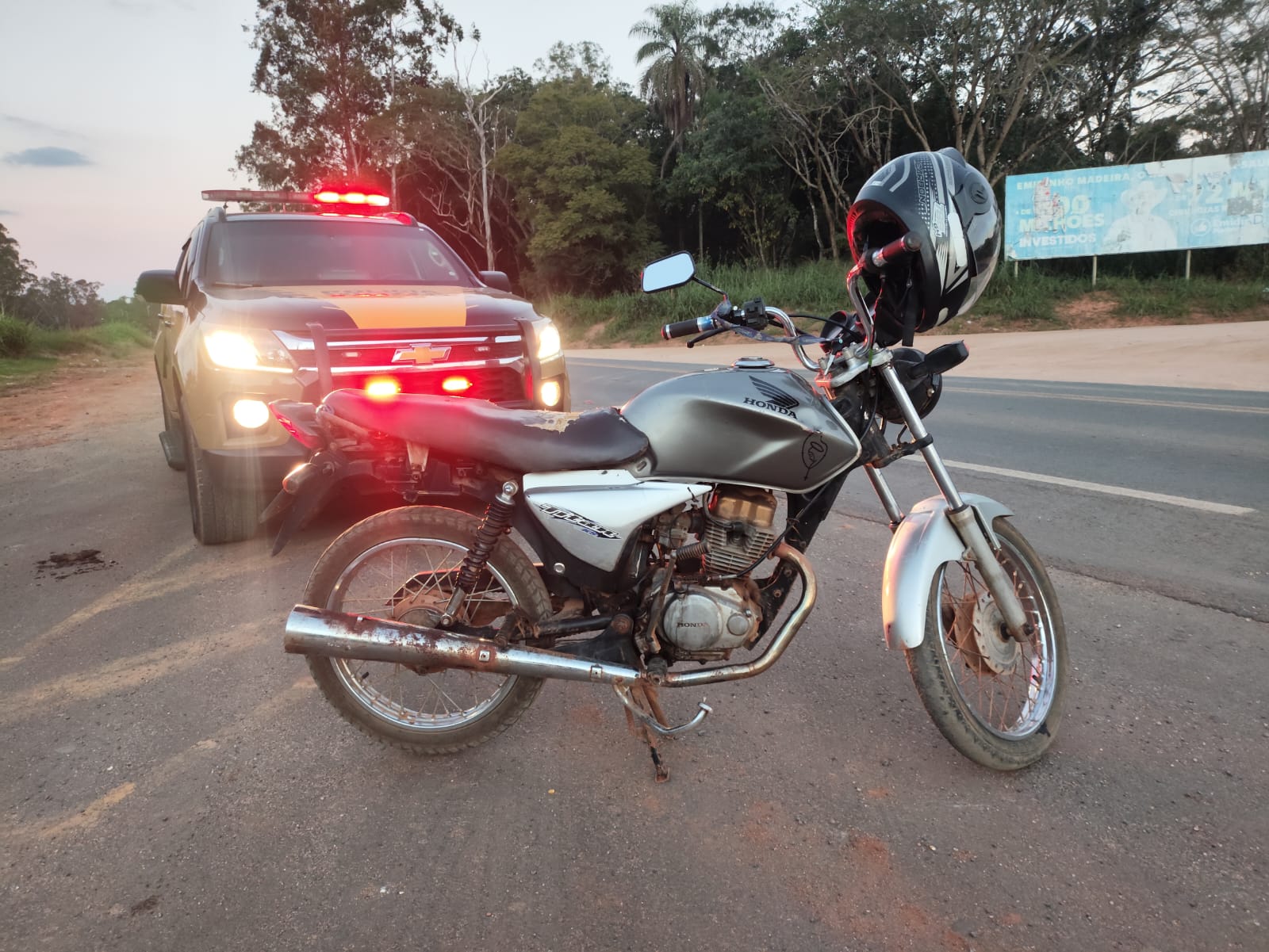 Um homem de 32 anos foi preso pela Polícia Militar Rodoviária por adulteração de sinal identificador de veículo durante uma abordagem na BR-146, em Muzambinho (MG), nesta última terça feira (21). Segundo a corporação, os militares realizavam patrulhamento pela rodovia quando perceberam que o condutor de uma motocicleta Honda CG Titan prata, com placa de Nova Resende (MG), diminuiu bruscamente a velocidade ao notar a presença da viatura, levantando suspeitas. Na fiscalização, os policiais constataram que o lacre da placa estava rompido e que o número do chassi havia sido parcialmente raspado, com apenas os três últimos dígitos visíveis. Após verificação, foi identificado o chassi original do veículo. Ainda conforme a PMRv, a placa utilizada pertencia, na verdade, a outra Honda CG 150 Titan azul registrada em Conceição Aparecida (MG), que estava regular. O veículo original identificado possuía baixa administrativa por comunicação de venda em Guarujá (SP). O condutor afirmou ter comprado a motocicleta por R$ 2 mil de um homem em Muzambinho (MG). Ele foi preso em flagrante e encaminhado à delegacia de plantão em Guaxupé. A motocicleta foi apreendida e removida para um pátio credenciado.