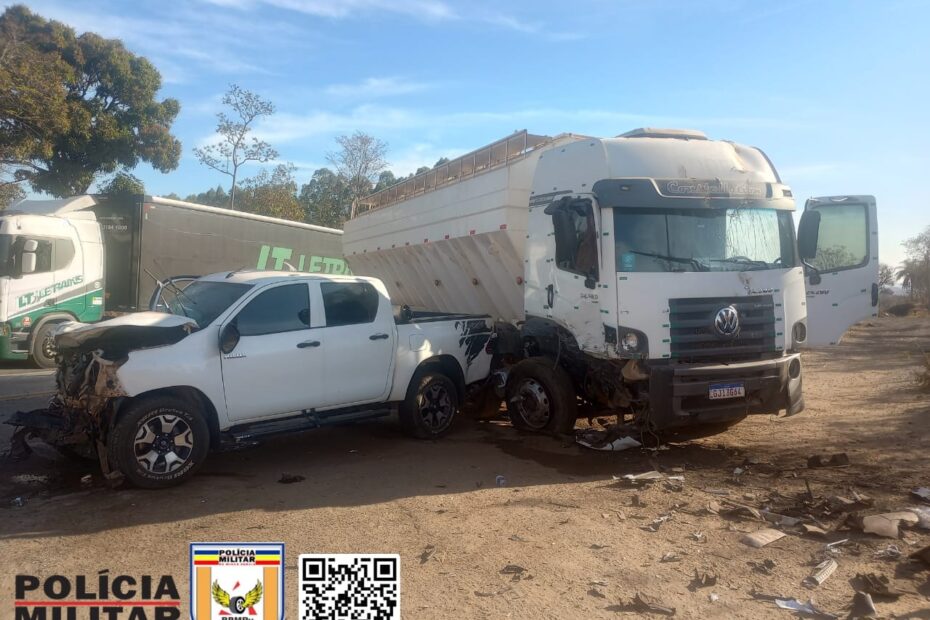 Três pessoas ficam feridas em colisão frontal entre caminhão e caminhonete em Passos