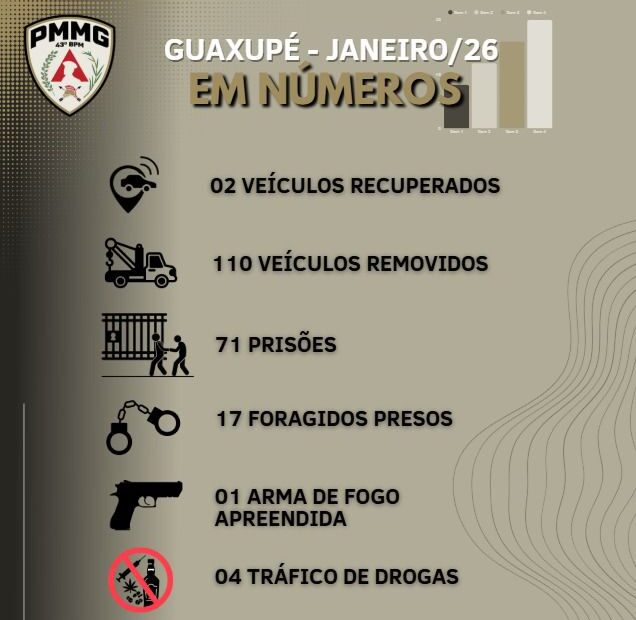 Polícia Militar divulga balanço de janeiro com 71 prisões e ações intensificadas em Guaxupé (MG)