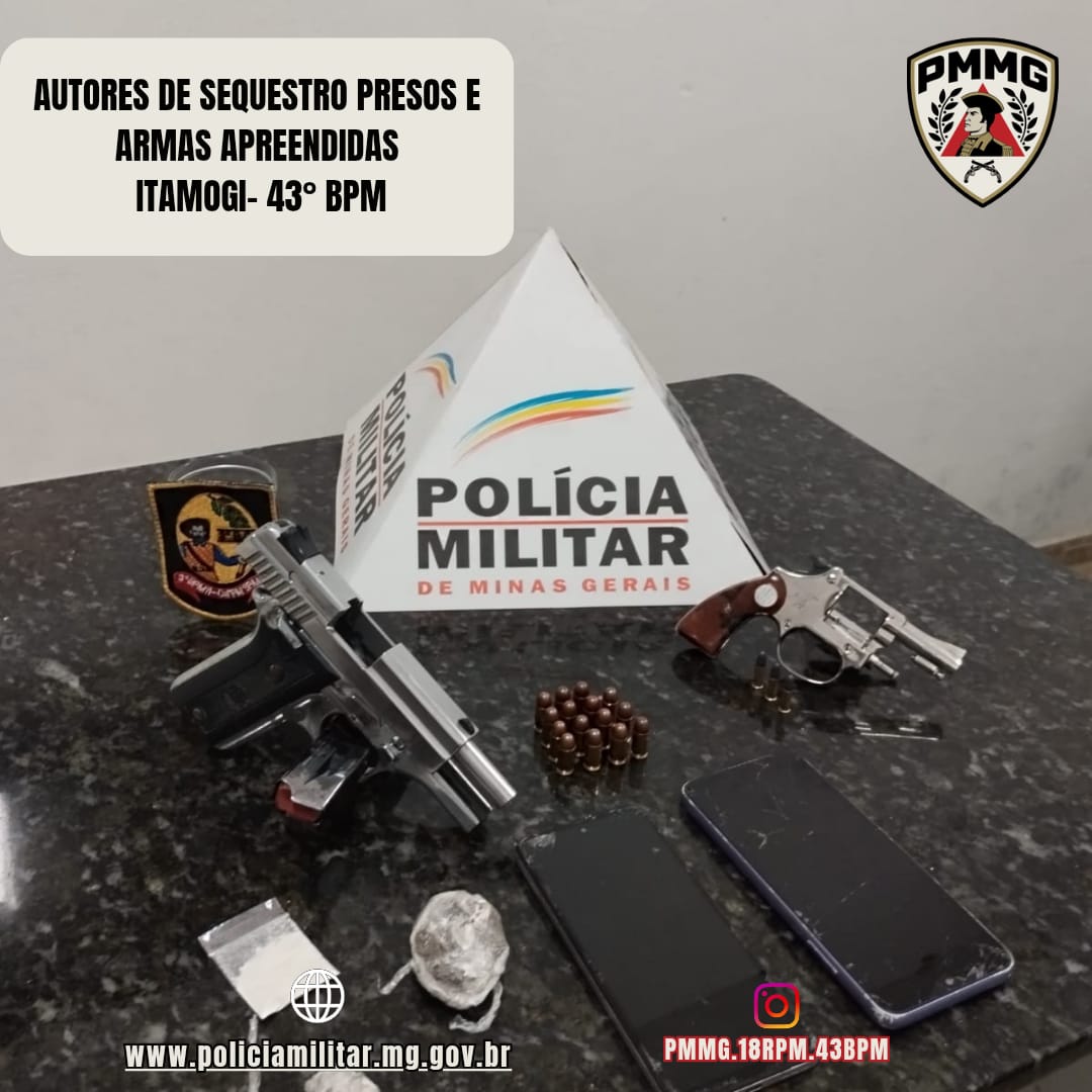 A Polícia Militar frustrou um sequestro em andamento nesta semana em Itamogi (MG), após receber informações da Polícia Militar do Estado de São Paulo. A ocorrência teve início em Santo Antônio da Alegria (SP), onde um homem de 25 anos foi coagido a entrar em um veículo e levado para a zona rural de Itamogi, sendo mantido em cárcere privado. A ação criminosa estaria relacionada a uma suposta dívida envolvendo familiares da vítima. Com base nas informações repassadas, equipes da PM localizaram uma propriedade rural e realizaram a abordagem dos suspeitos, resgatando a vítima sem ferimentos. Durante a operação, foram presos três homens, de 33, 44 e 23 anos. No local, os militares apreenderam duas armas de fogo, sendo um revólver calibre .22 e uma pistola calibre .380, além de munições, drogas, aparelhos celulares e o veículo utilizado no crime. A vítima relatou ter sido ameaçada de morte e intimidada com o uso de armas durante todo o período do sequestro, conseguindo pedir ajuda por meio do celular. Os autores alegaram que buscavam apenas receber uma dívida, versão que não foi confirmada. Os três foram encaminhados à Delegacia de Polícia Civil. A Polícia Militar destacou que a integração entre forças policiais de estados vizinhos foi essencial para o desfecho positivo da ocorrência.