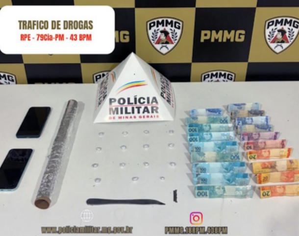 Neste último sábado (15), a Polícia Militar de Guaxupé (MG) realizava Operação Incursão em Zona Quente de Criminalidade no bairro Angola, quando visualizou uma mulher na porta de um apartamento na Rua Vicente Frota, local já conhecido pelo tráfico de drogas. Ao perceber a presença dos militares, ela tentou fugir mas foi contida. Durante abordagem foi localizada uma pedra de crack. No apartamento foram encontradas 14 pedras de crack, 905 reais em dinheiro, um celular, um rolo de papel alumínio, uma faca e uma lâmina de gilete. O irmão da autora também estava no local no momento. Os dois foram presos e encaminhados para a Delegacia de Polícia Civil, juntamente com o material apreendido.