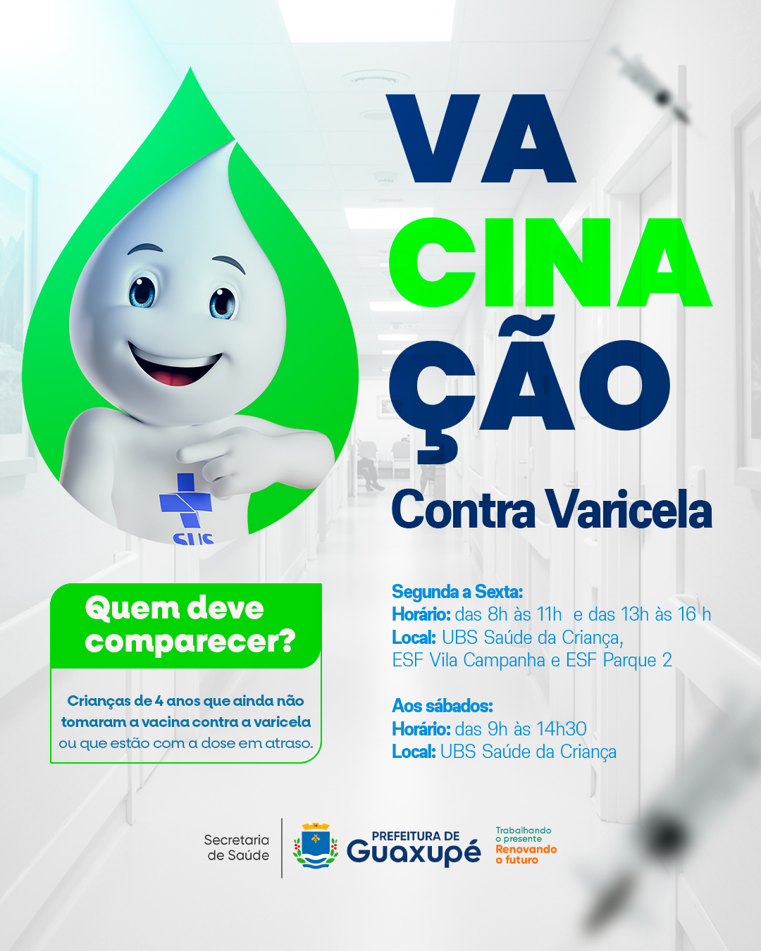 A Secretaria Municipal de Saúde anunciou uma nova campanha para atualização da caderneta de vacinação infantil, com foco especial na imunização contra a varicela — também conhecida como catapora. A ação tem o objetivo de garantir a proteção das crianças e evitar surtos da doença, que é altamente contagiosa e pode causar complicações.